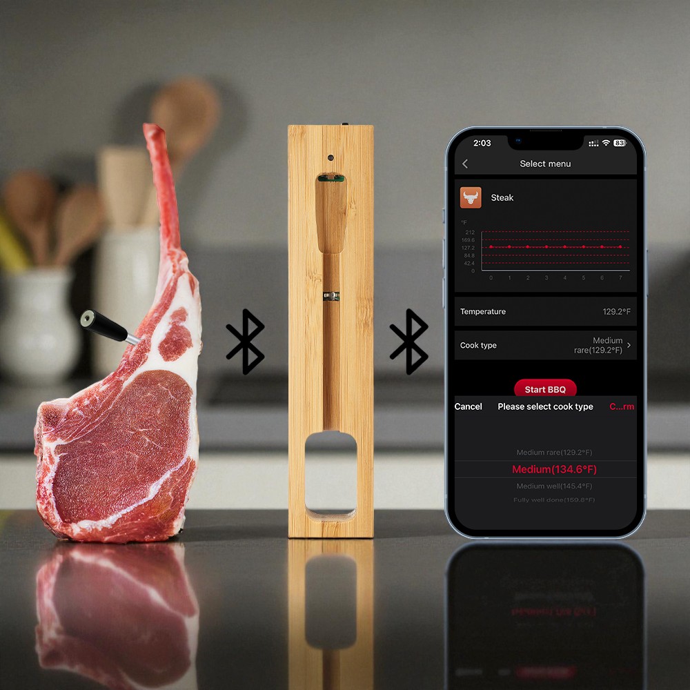 De slimme Bluetooth BBQ vleesthermometer voor perfect gegaard vlees