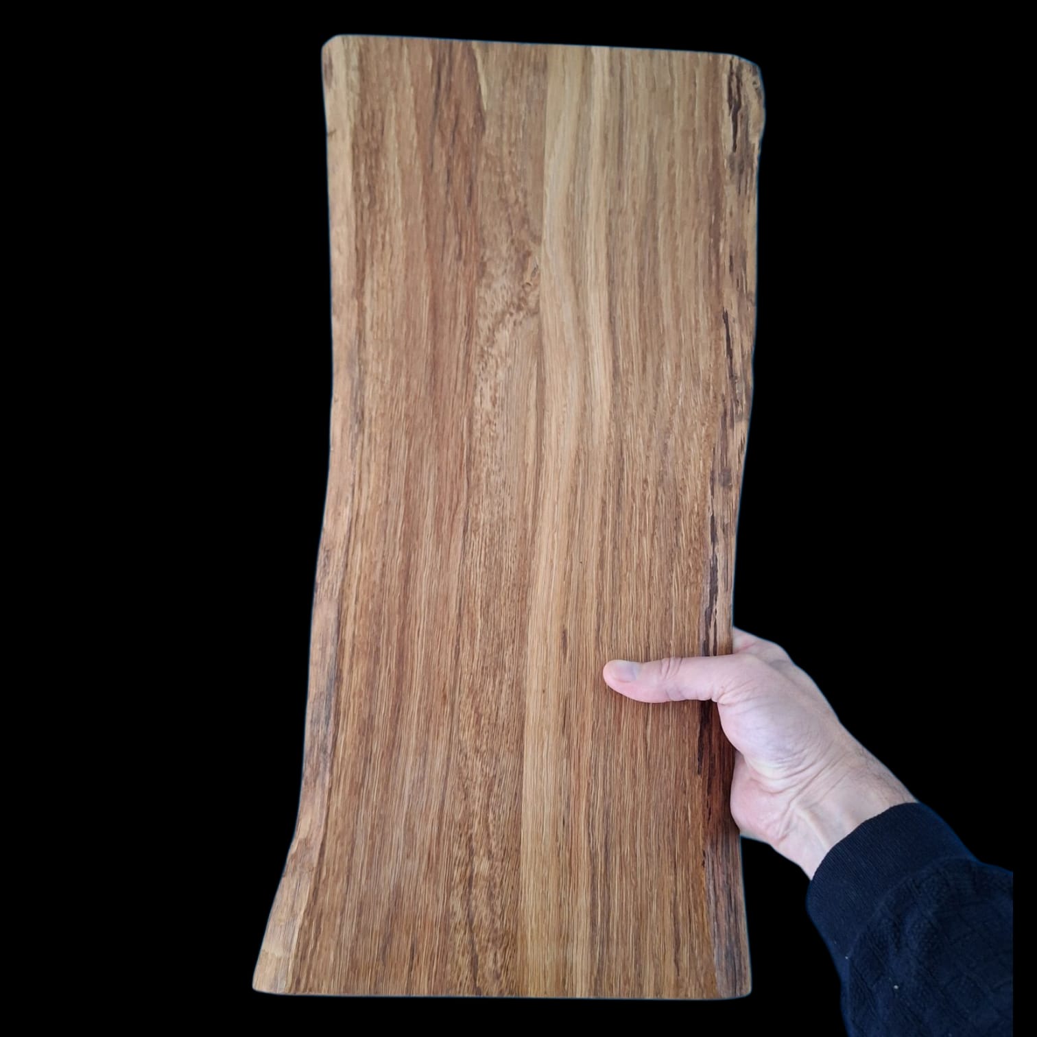 Deze handgemaakte snij- en borrelplank van Nederlands eikenhout is uniek dankzij zijn mooie natuurlijke zijkanten, rechtstreeks uit onze eigen werkplaats op de Veluwe.